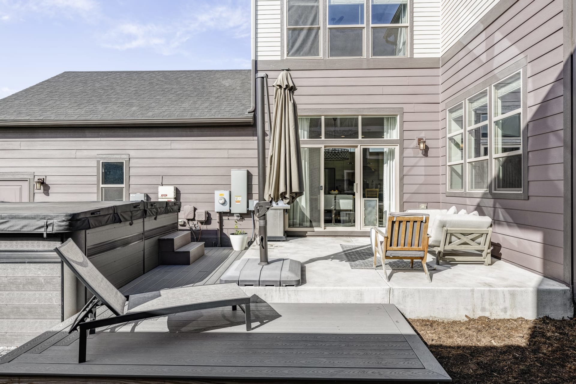 Upstairs there are 2 bedrooms, a second bathroom, a convenient laundry room with plentiful cabinetry + the spacious primary suite. The primary suite is accented with a dark moody statement wall that perfectly complements the coffered ceilings. The ensuite bathroom is equipped with double sinks, quartz counters, and a glass encased shower. There is also a large, light filled walk-in closet with custom organization. In the finished basement you’ll discover a large living area, as well as a 4th bedroom + bathroom making a nice private space to host guests. There’s also a large unfinished area that offers extra storage space. The landscaped backyard includes a large stamped concrete patio, that continues to a trex deck that guides you to the large swim spa. Just off the deck is the spacious green space. Take control of your home's electricity usage with the 3.84 kW solar system that was designed to offset a portion of the home’s energy consumption. You can breathe easy knowing this home is EPA Indoor airPLUS Qualified, which ensures the building materials and construction methods were designed to keep air pollutants to a minimum. This Thrive home is just a short walk from Central’s Park’s newest pool, basketball courts, sand volleyball, pickleball courts, trails, parks, playgrounds and top-rated schools.