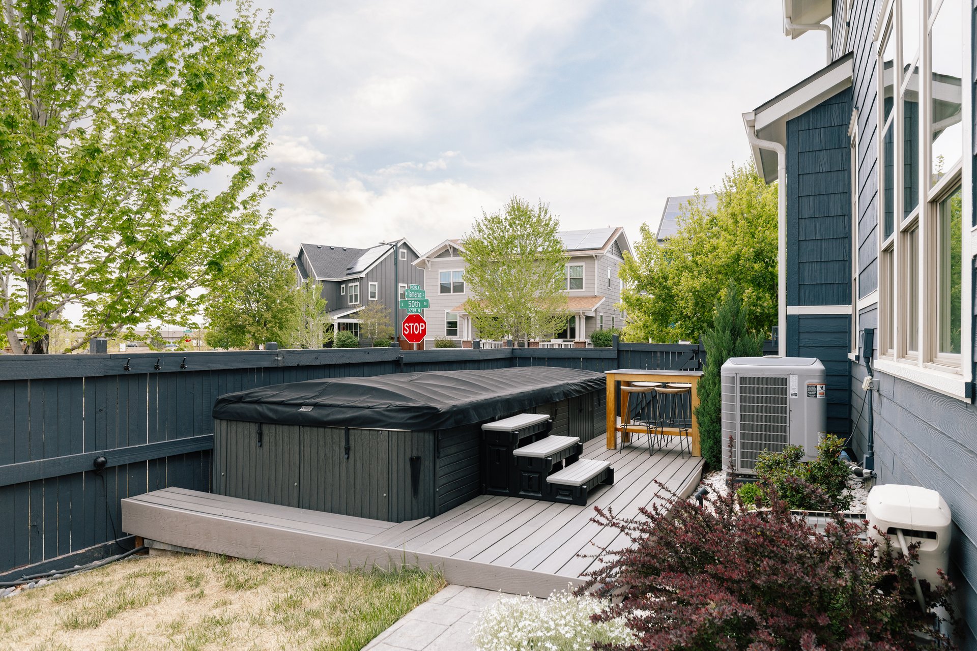 Step into the backyard and discover a private retreat centered around a custom “spool” (swim spa)—a rare feature that merges the relaxation of a spa with the functionality of a pool. Designed to be enjoyed year-round, it offers adjustable temperatures ranging from 80 to 104 degrees, creating the perfect setting whether you’re unwinding after a long day or hosting friends under the open sky.