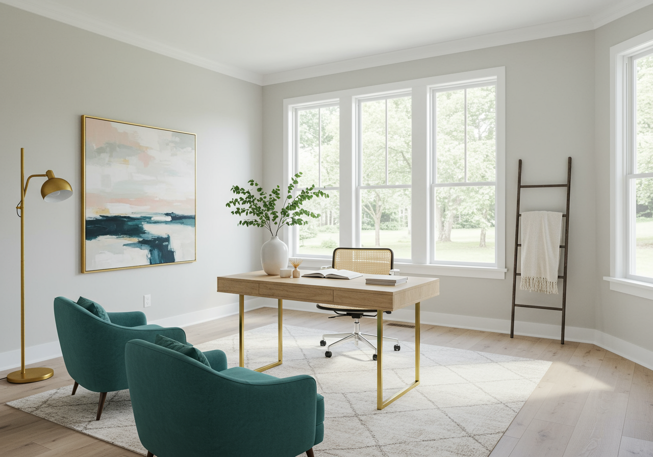 The living room features plentiful windows and a modern gas fireplace. Just off the living room you'll locate a private main floor study, offering the perfect space to work from home. On the second floor you'll locate a large airy loft, 2 secondary bedrooms connected by a jack and Jill bathroom, a third secondary bedroom with an ensuite bathroom, a convenient second floor laundry room (that connects to the primary closet), as well as the primary suite.
