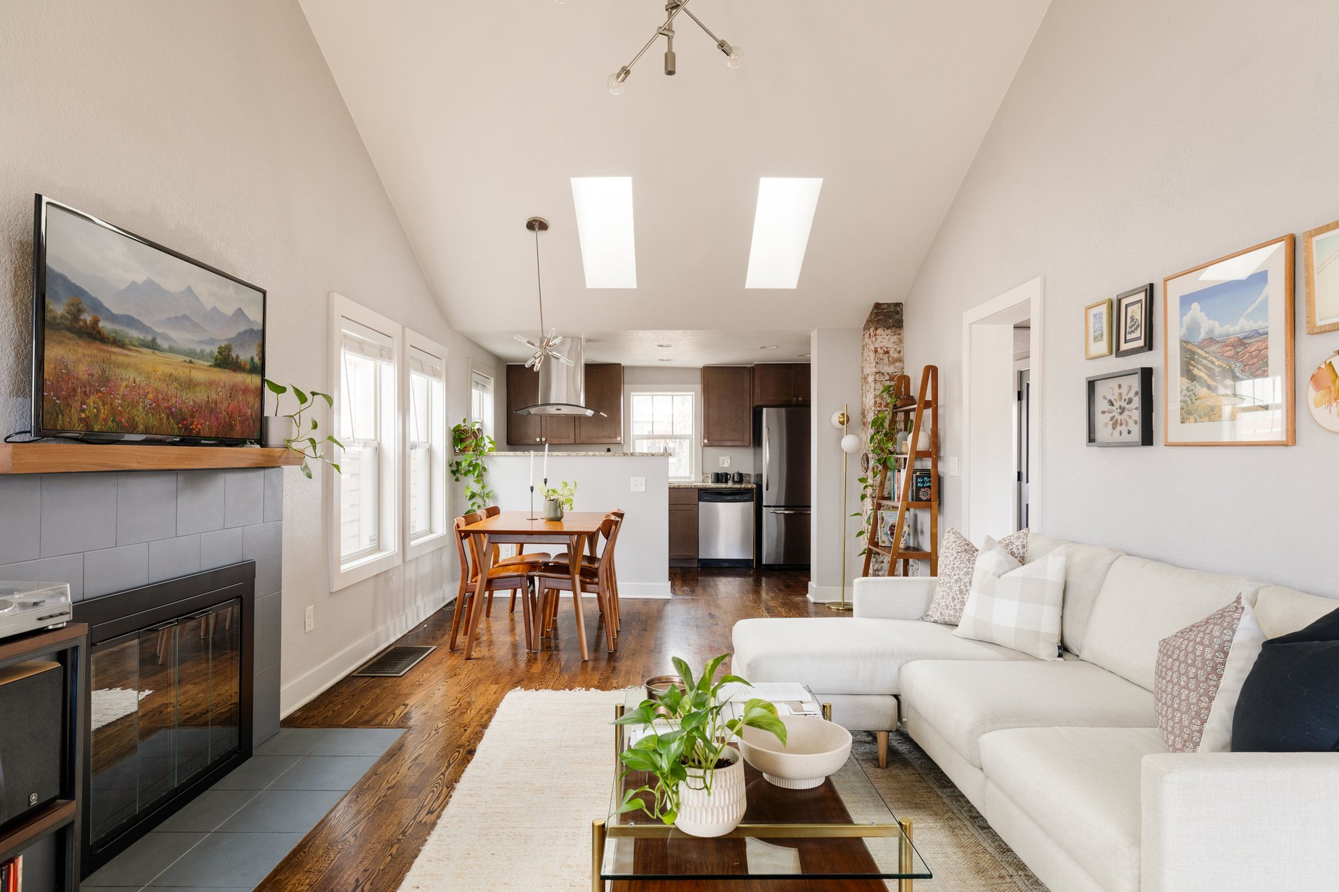 The flow between the living, dining, and kitchen spaces feels intentional and functional, designed for modern Denver living where connection and ease take center stage.