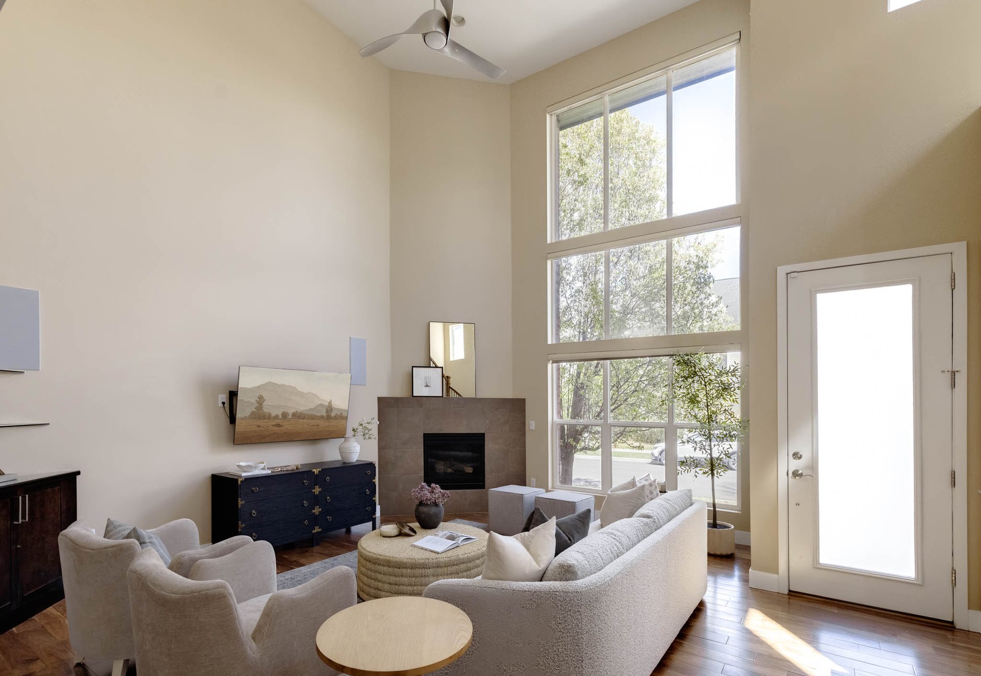 Step inside this beautifully appointed Infinity Balboa and the home immediately reveals itself through thoughtful design and architectural presence. Solid acacia hardwood floors ground the space with warmth, while soaring 20-foot ceilings in the living room create a dramatic sense of volume. Floor-to-ceiling windows flood the interior with natural light, highlighting a sleek fireplace that anchors the room with understated elegance. The result is a space that feels both expansive and inviting—designed to impress without sacrificing comfort.