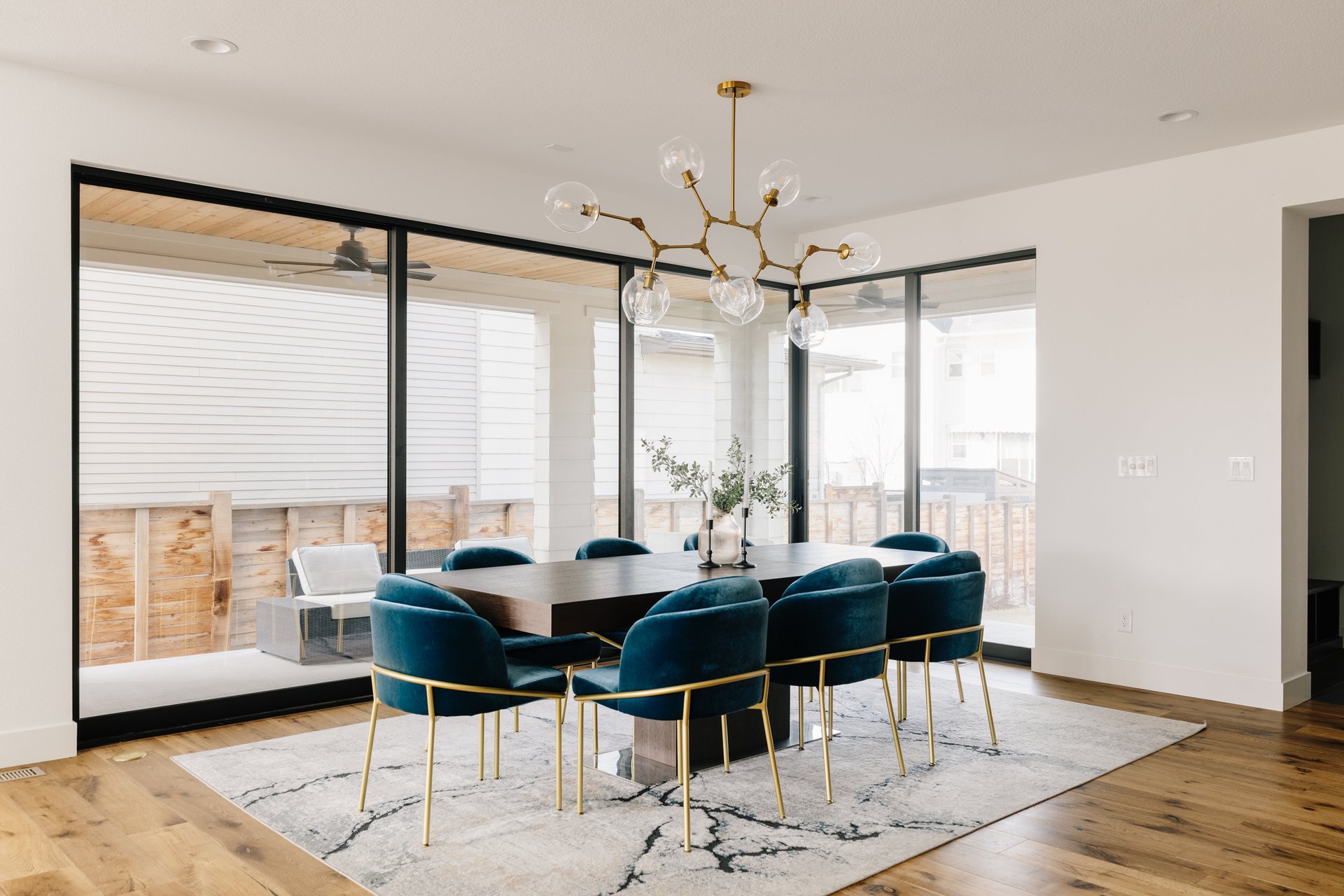 A stacked slider door connects the interior to the covered patio, creating seamless indoor–outdoor living ideal for entertaining guests or enjoying quiet Colorado evenings.