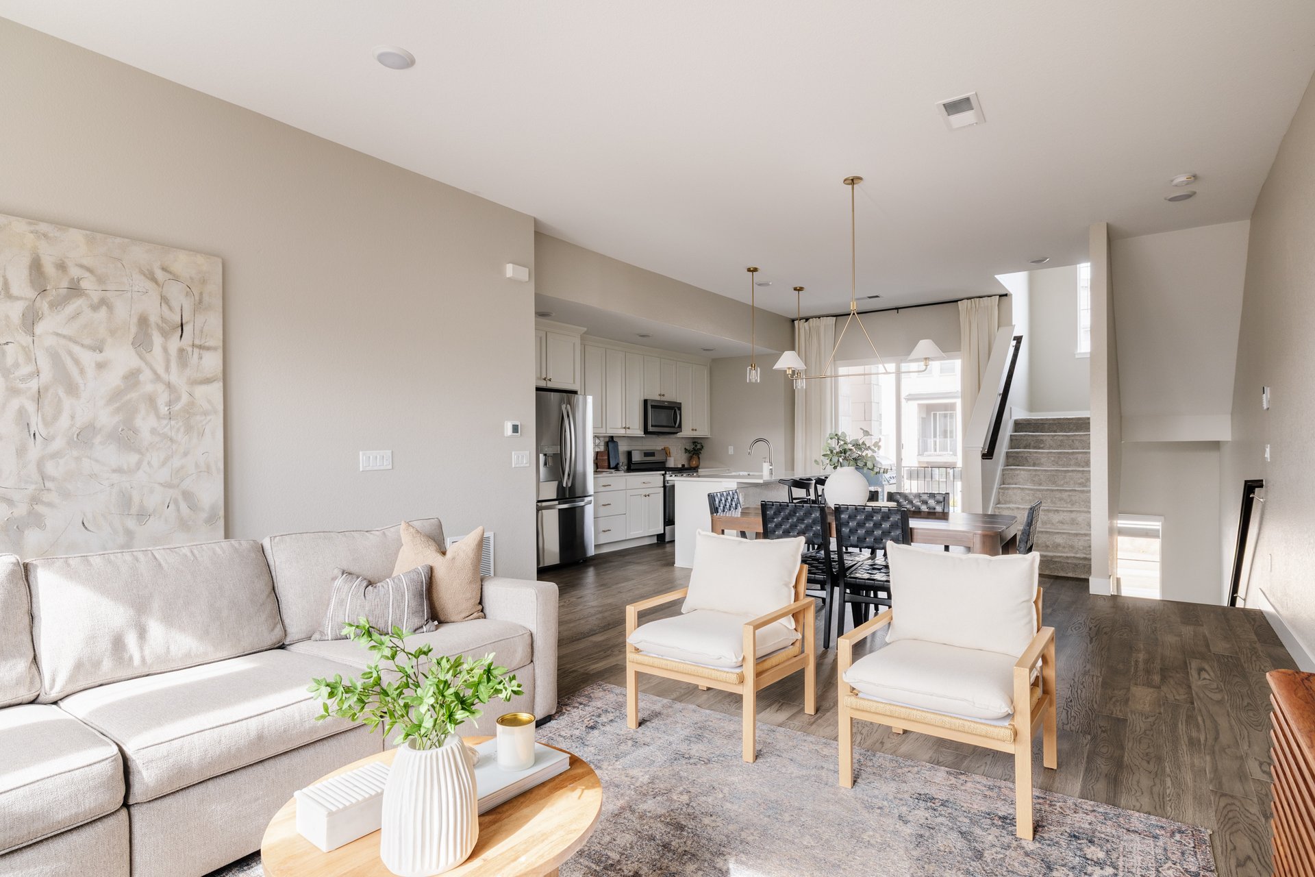 The open-concept layout flows effortlessly from kitchen to living and dining areas, then extends outside to an additional patio — creating that coveted indoor-outdoor connection perfect for morning coffee, evening wine, or hosting friends after a Colorado sunset.