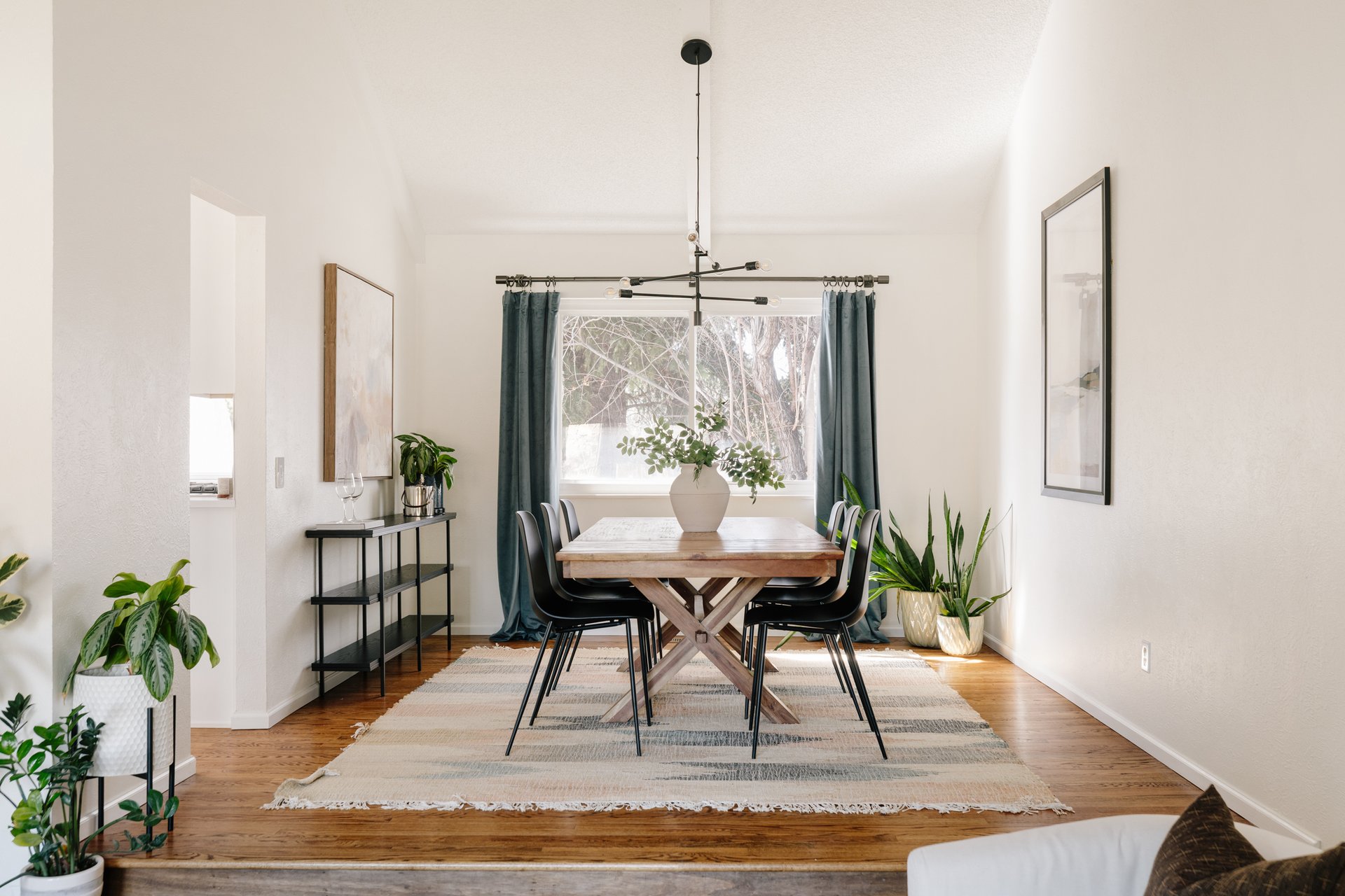 The formal sitting room offers the perfect place to gather with friends or unwind with a book, while the step-up dining room, anchored by a striking sputnik chandelier, sets a sophisticated stage for holiday dinners, celebrations, and memorable evenings at home.